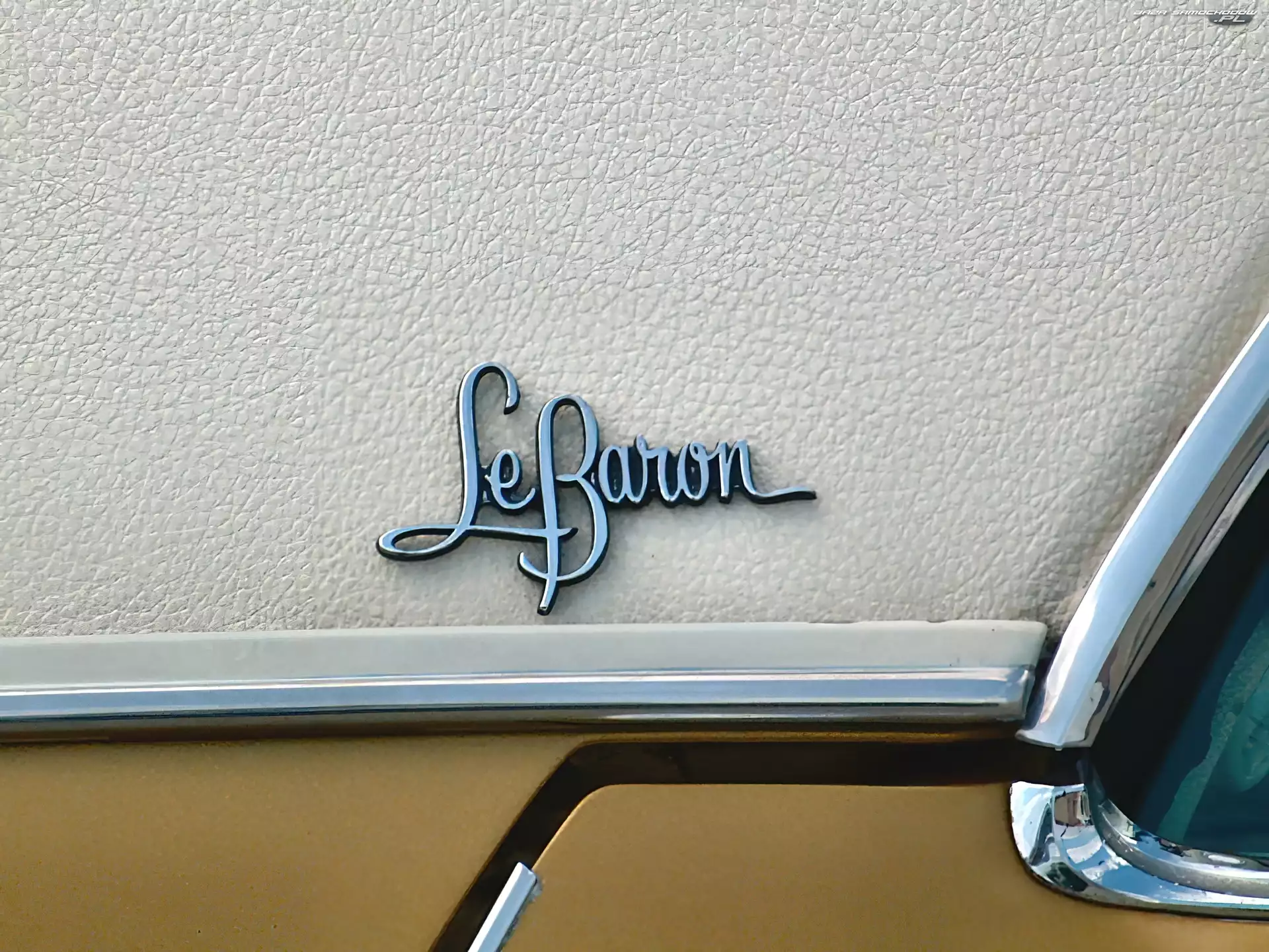 Chrysler Le Baron, Kabriolet Le Baron, Emblemat Chrysler Le Baron, Wnętrze Chrysler Le Baron, Drewniane, Boczne, Panele Kabriolet, Chrysler Le Baron Chrysler Le Baron, Salon Alufelgi, Chrysler Le Baron, Szprychowe