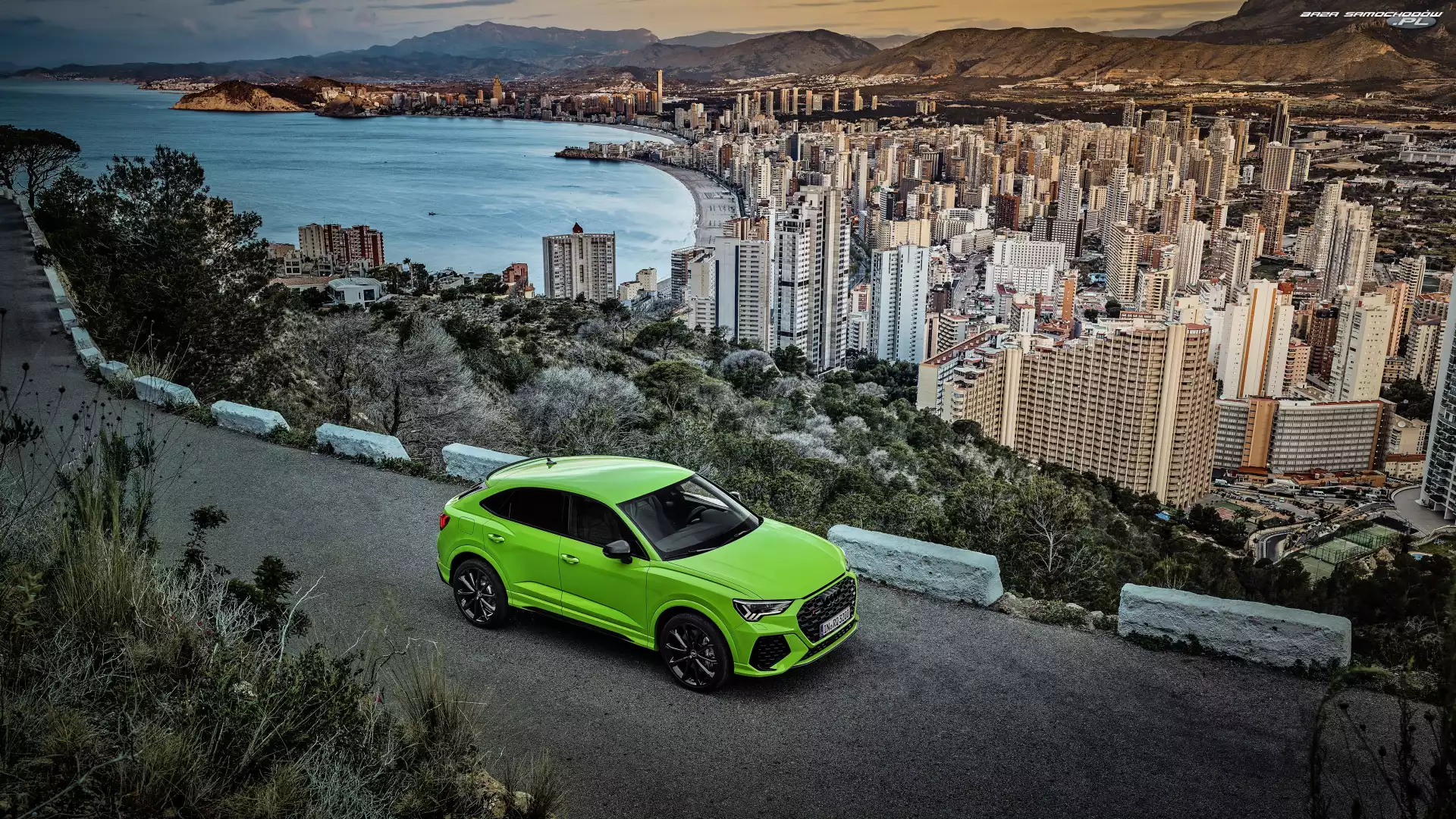 Samochód: Audi RS Q3 Sportback, Domy, Zielone, Miasto